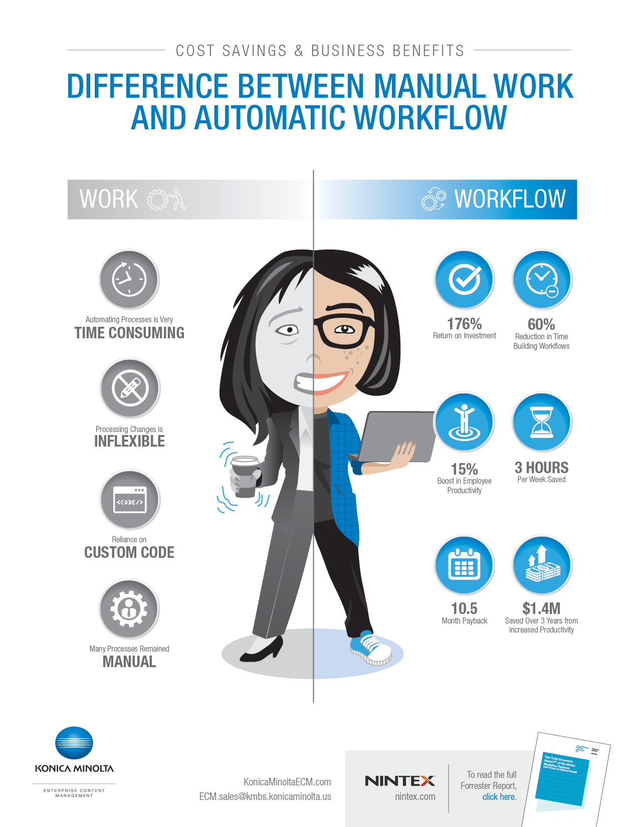 Revolutionize your business․ manual operations and transform manual processes with business process automation services from Konica Minolta. We understand the power of technology, and how simple tasks from onboarding new hires to accounts payable can paralyze a company when one important link is out of synch or documents get lost.